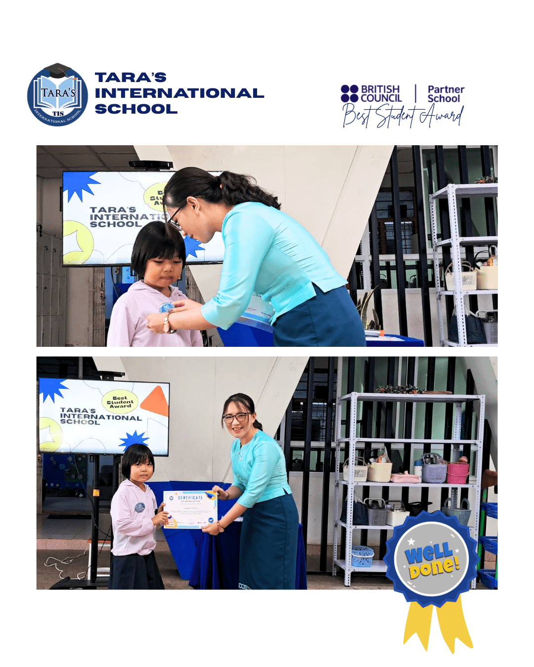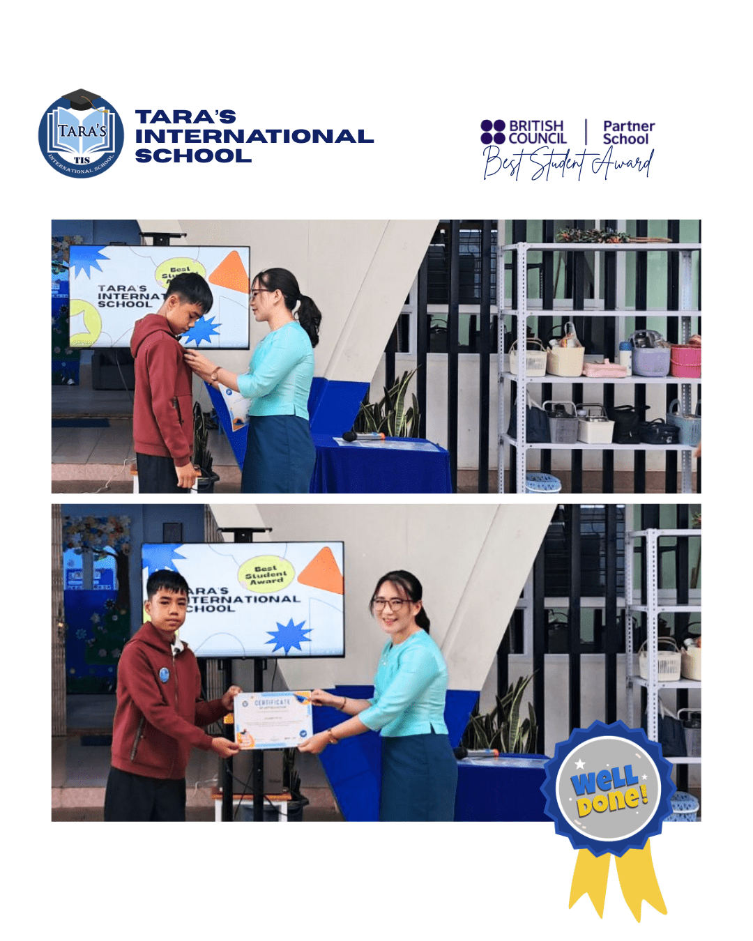 မင်္ဂလာပါ ဖေဖေမေမေတို့နှင့် ကျောင်းသားကျောင်းသူများရှင် Tara’s International School မှ နောက်လာမည့်လများတွင်လဲရွေးချယ်ပေးအပ်သွားမည့် Best Students Award (အကောင်းဆုံးကျောင်းသား/ကျောင်းသူဆု) ကို July လမှစတင်၍ရွေးချယ်ပေးအပ်ပြီးဖြစ်ပါသည်။ အတန်းတစ်တန်းစီမှ တစ်ဦးစီရွေးချယ်ခြင်းဖြစ်ပြီး နောက်ဆုံး Final list တွင် Primary မှတစ်ဦးနှင့်Secondary မှတစ်ဦးကိုသာရွေးချယ်ခြင်းဖြစ်ပါသည်