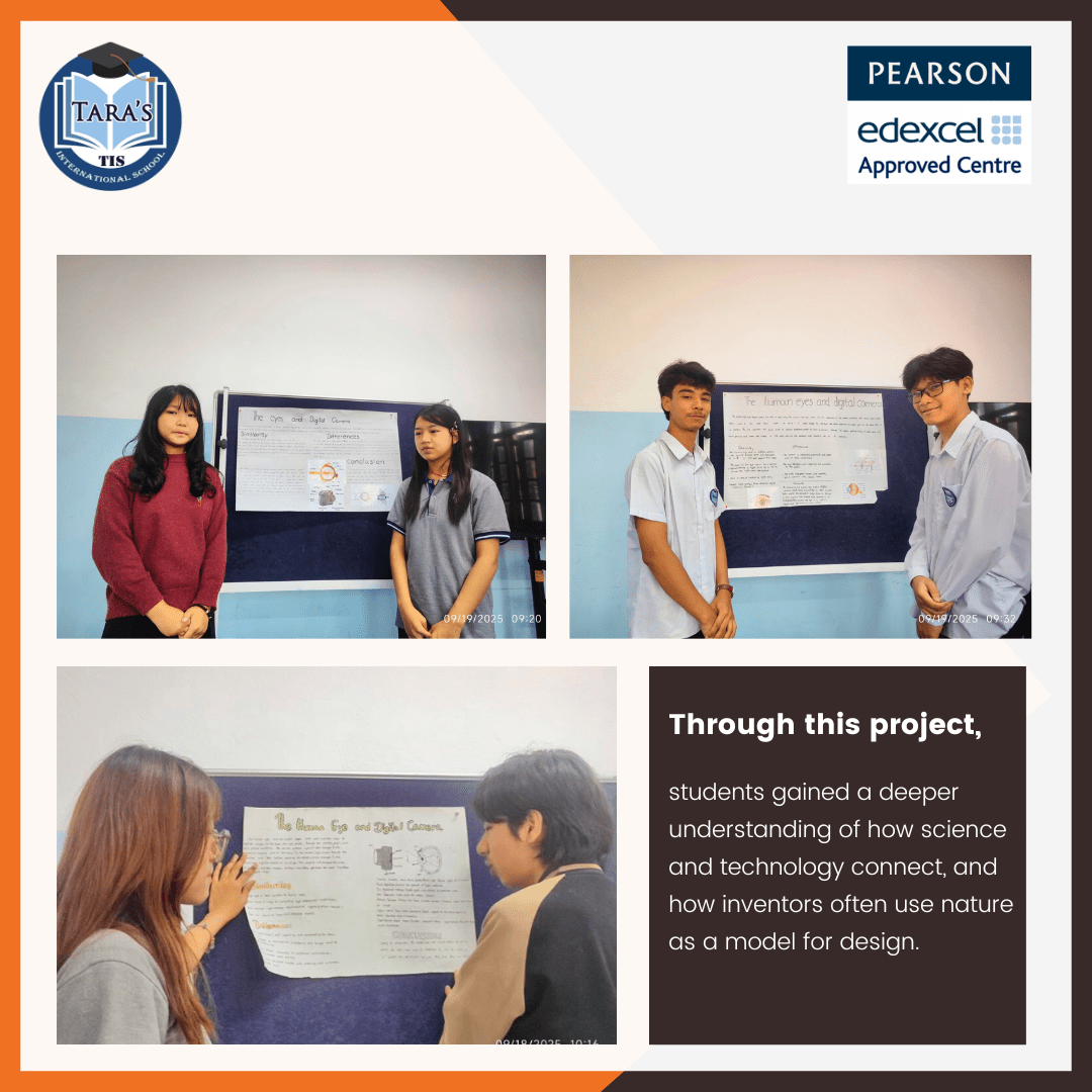 ✔️ Differences – Unlike cameras, eyes have a retina with living cells that send signals to the brain, while cameras use sensors or film. Through this project, students gained a deeper understanding of how science and technology connect, and how inventors often use nature as a model for design.
